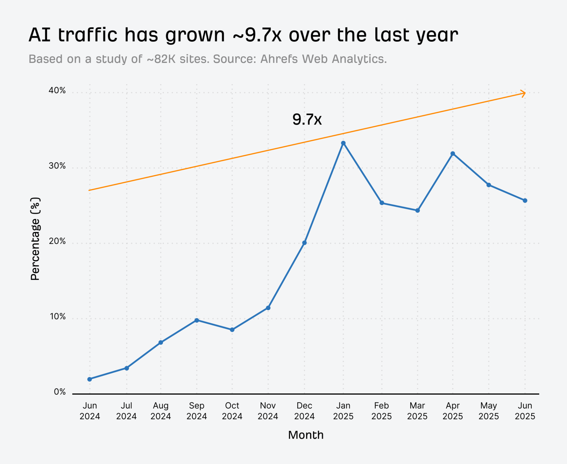 Ahrefs. (2025). AI Traffic Has Increased 9.7x in the Past Year. https://ahrefs.com/blog/ai-traffic-increase/