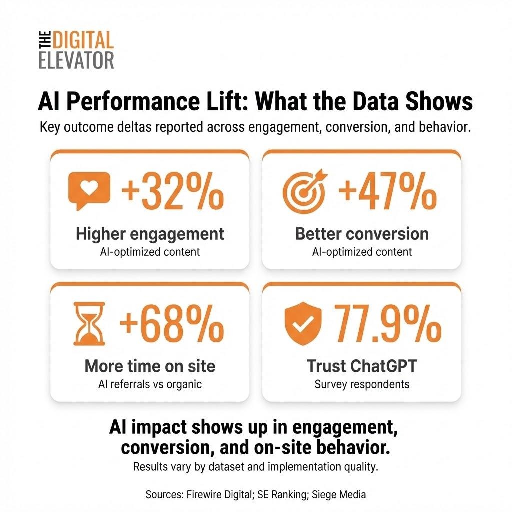AI-optimized content is associated with 47% better conversion rates (as reported in the cited source). Source: Firewire Digital.