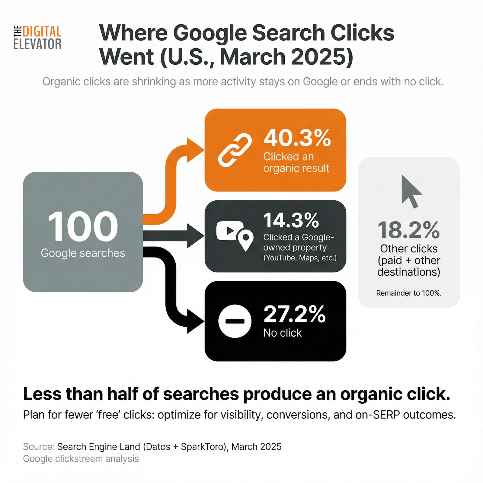 3. 40.3% of U.S. Google searchers clicked an organic result in March 2025 (down from 44.2% in March 2024). Source: Search Engine Land.