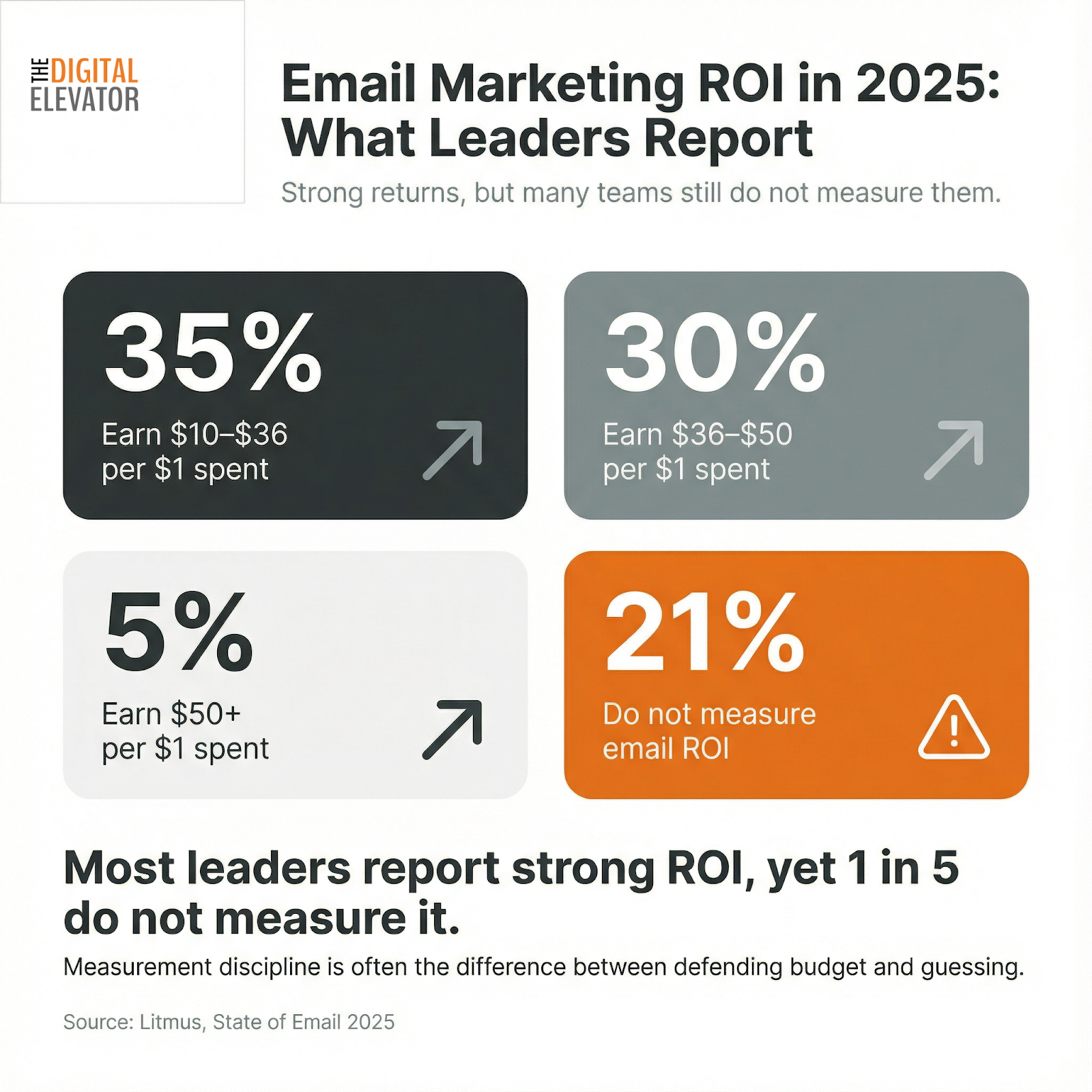 2. 35% of marketing leaders report earning $10 to $36 for every $1 spent on email marketing (State of Email 2025). Source: Litmus.