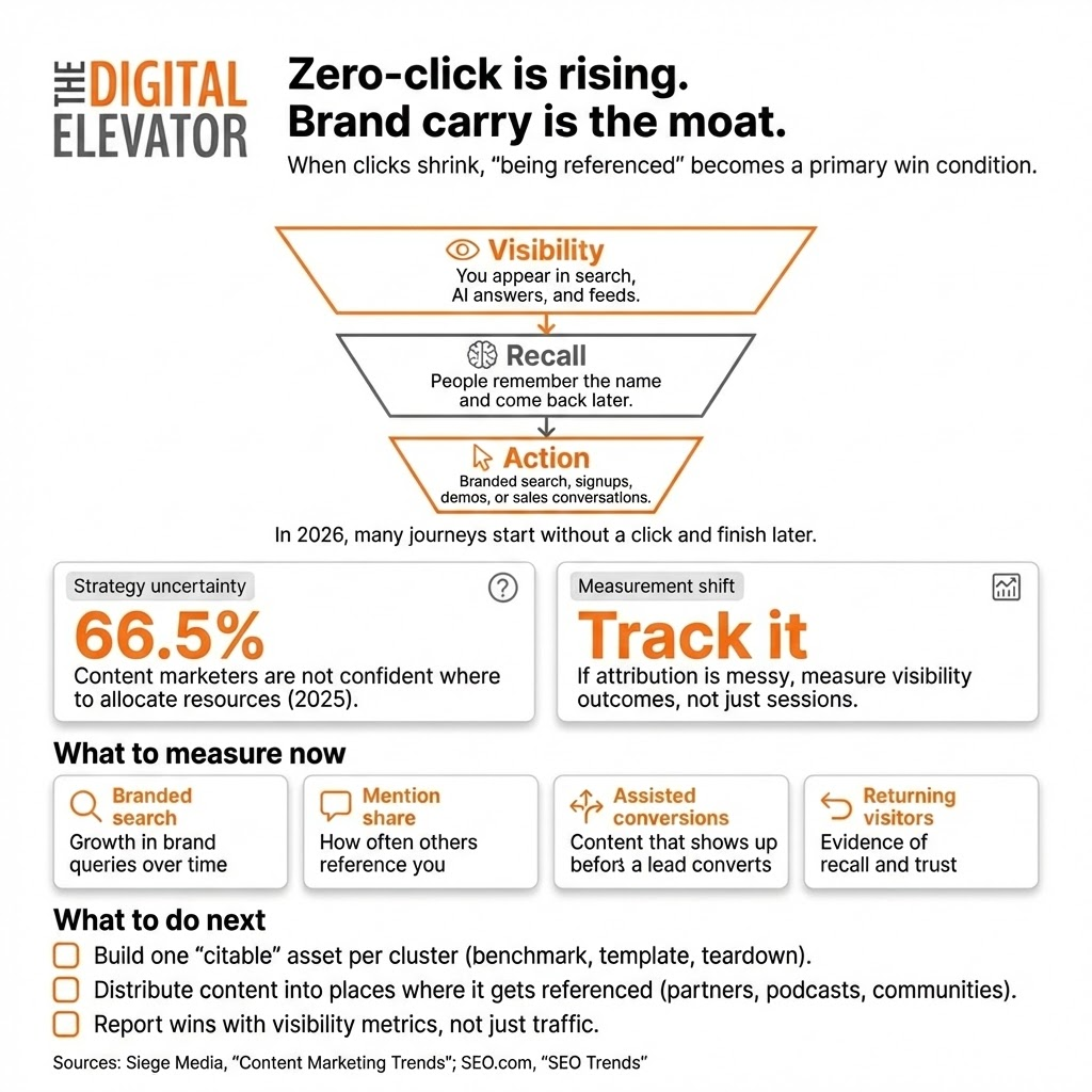 The defining 2026 shift is not that SEO is “over.” It is that SEO outcomes are now produced by a broader credibility economy. AI compresses the space for generic content, while raising the payoff for content with proof, voice, and connected distribution.