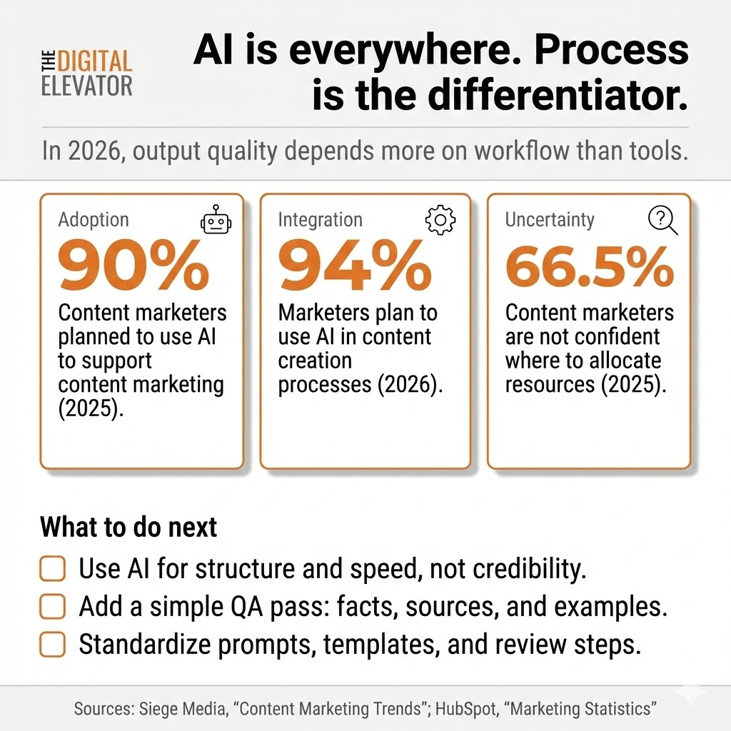 • HubSpot reports about 94% of marketers plan to use AI in content creation processes in 2026.