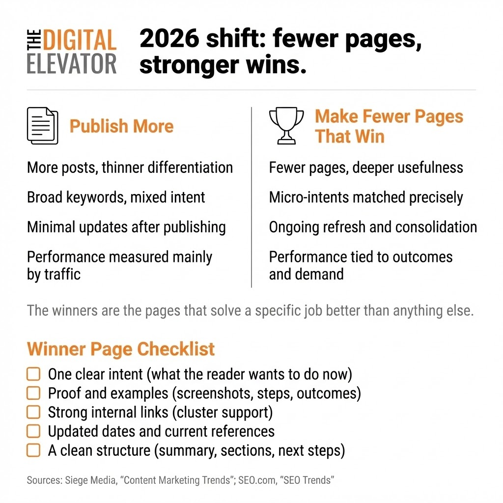 4) Content strategy is moving from “publish more” to “make fewer pages that win”